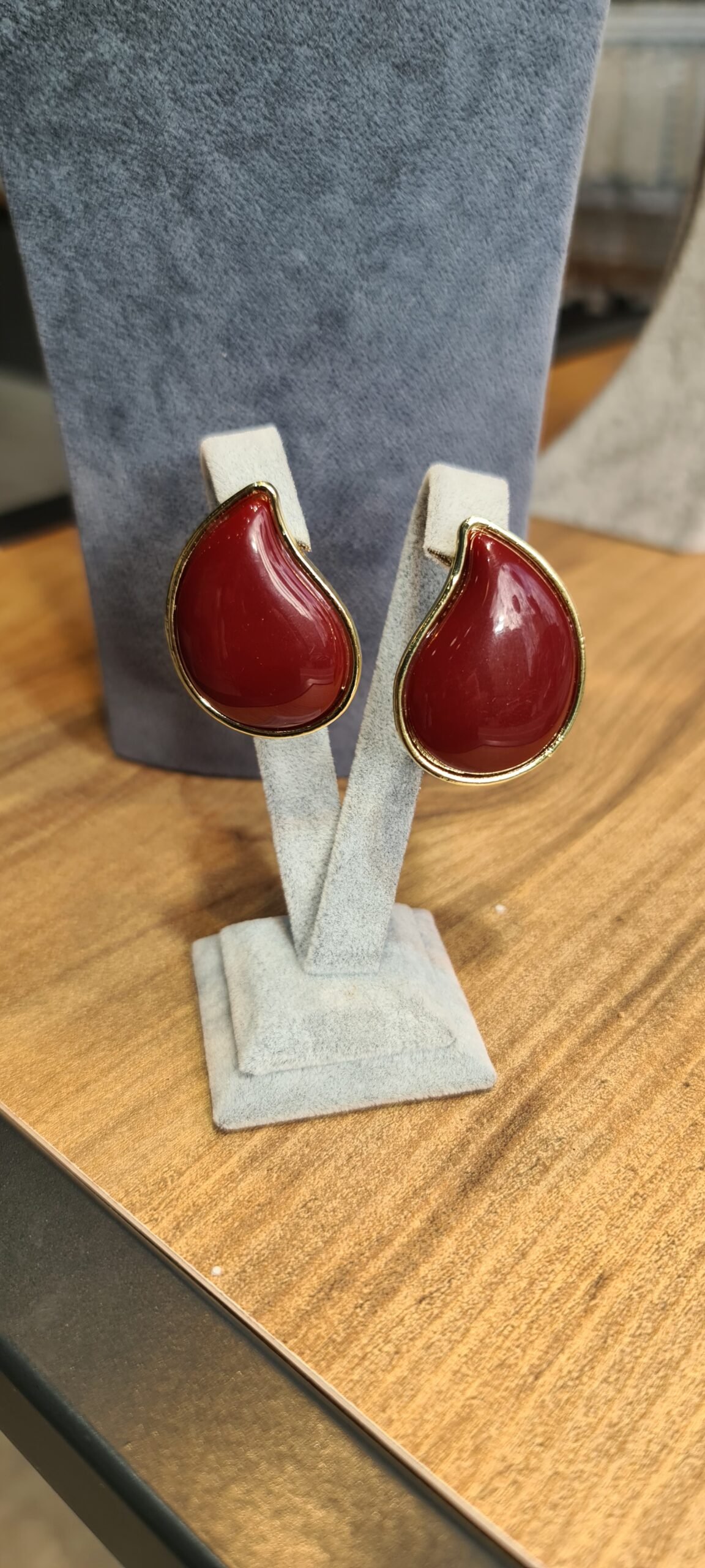 Damla detaylı bordo küpe
