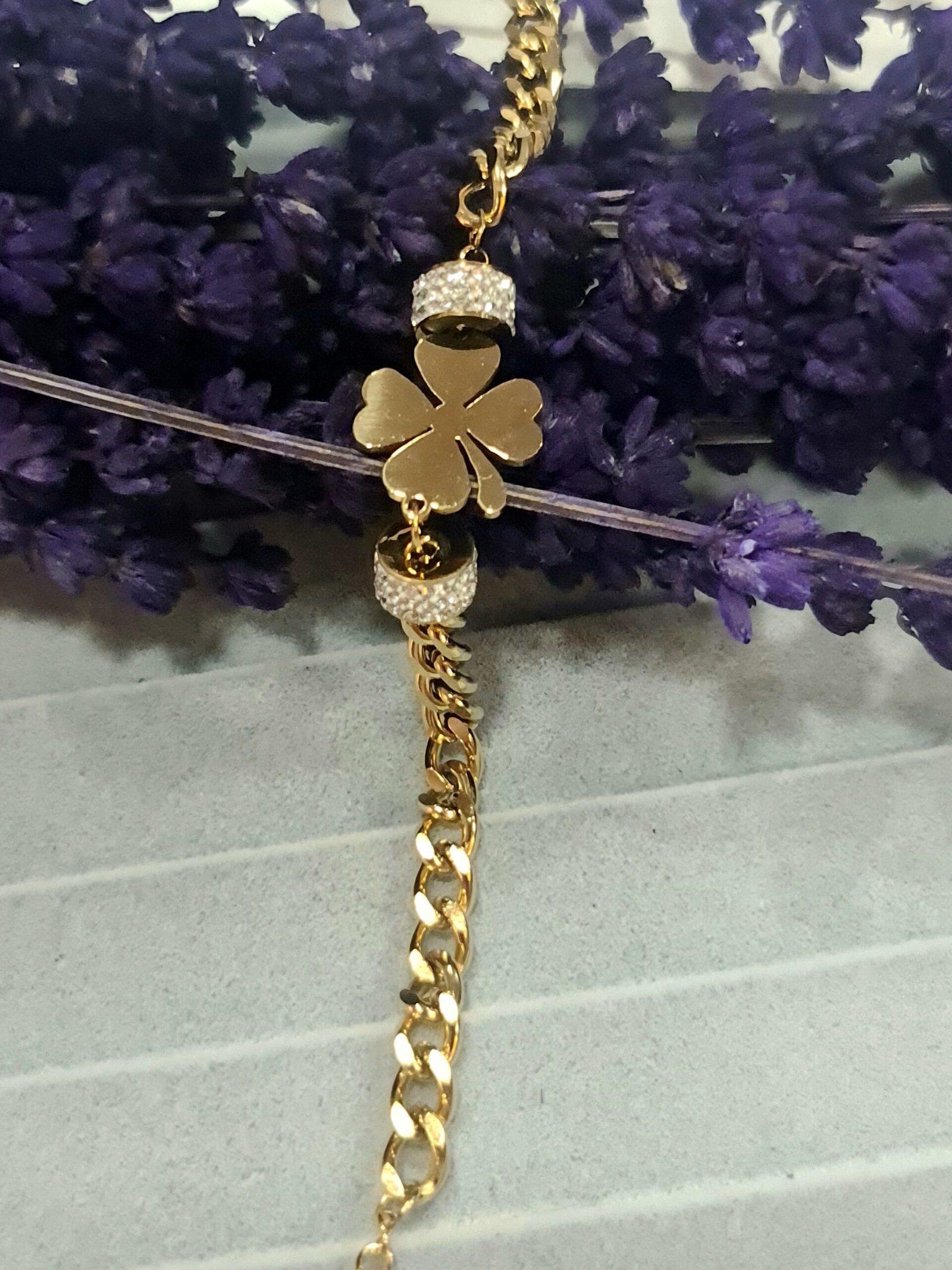 YONCA DETAYLI TAŞLI GOLD RENKLİ ÇELİK BİLEKLİK